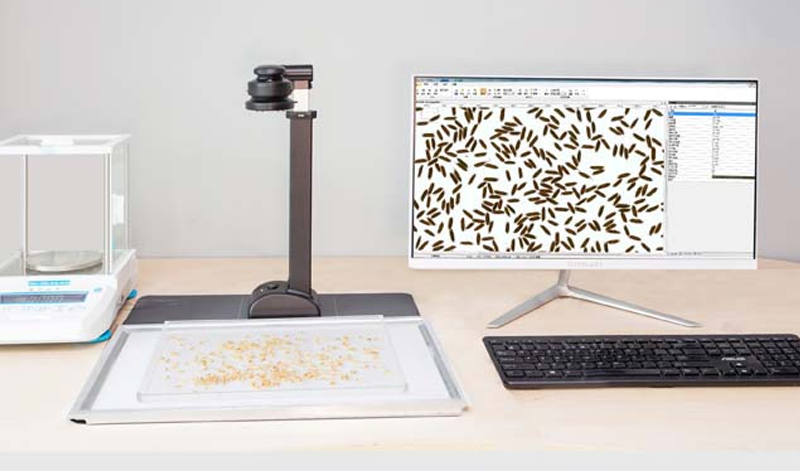 SC-E大米外觀品質檢測儀,稻米品質分析儀,米質判定儀,大米外觀品質分析儀。自動檢測評價各類大米(秈米、粳米、糯米、絲苗米,特種米、有機米、黑米等)。能自動分析出大米的:粒形(直徑、長度、寬度、長寬比、面積)、整精米數量、整精米率、透明度、碾精、堊白率、堊白度、千粒重、碎米率、黃粒米、病斑或黃變率、霉變率、不完善率(未成熟粒、雜質),以及糯米的陰米率等。與國標GB/T1350稻谷、GB/T17891優質稻谷或GB1354大米、農業部新標大米NY/T2334-2013、大米粒型分類判定LS/T6116-2016、糧食行業標準 大米LS/T 3247—2017相對應,能檢測各項指標的重量比和粒數比。廣泛適用于大米質量監管檢測的相關部門,提高工作效率。